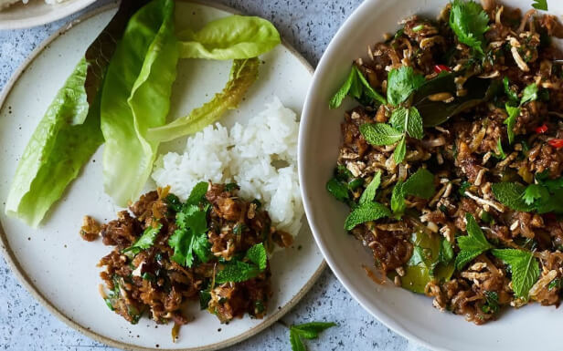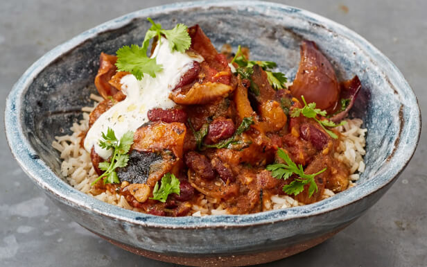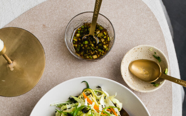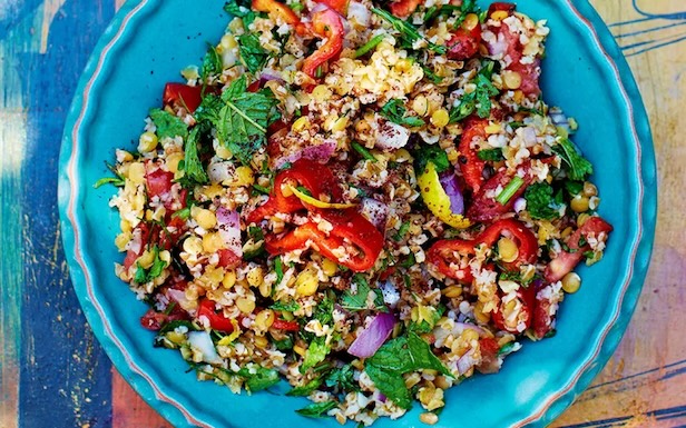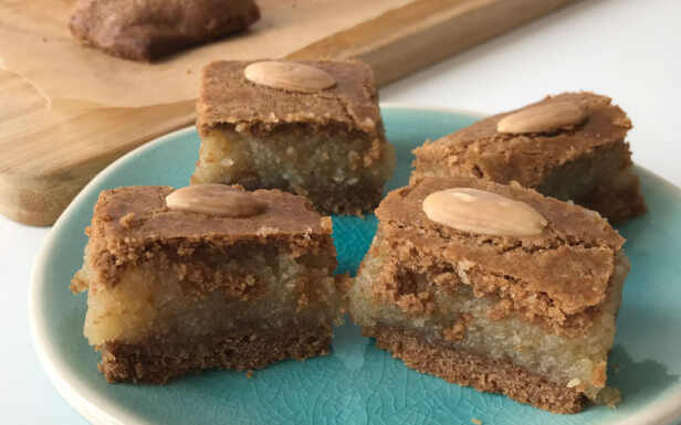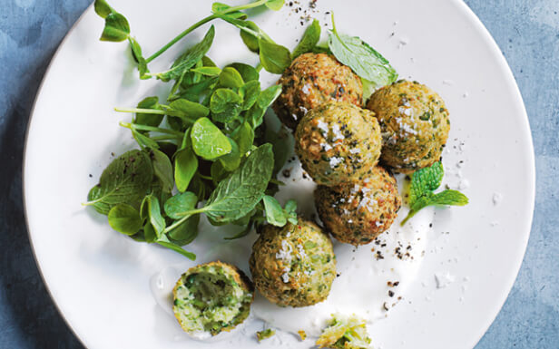 Spruitjes-dadelhummus met geroosterde biet en venkel