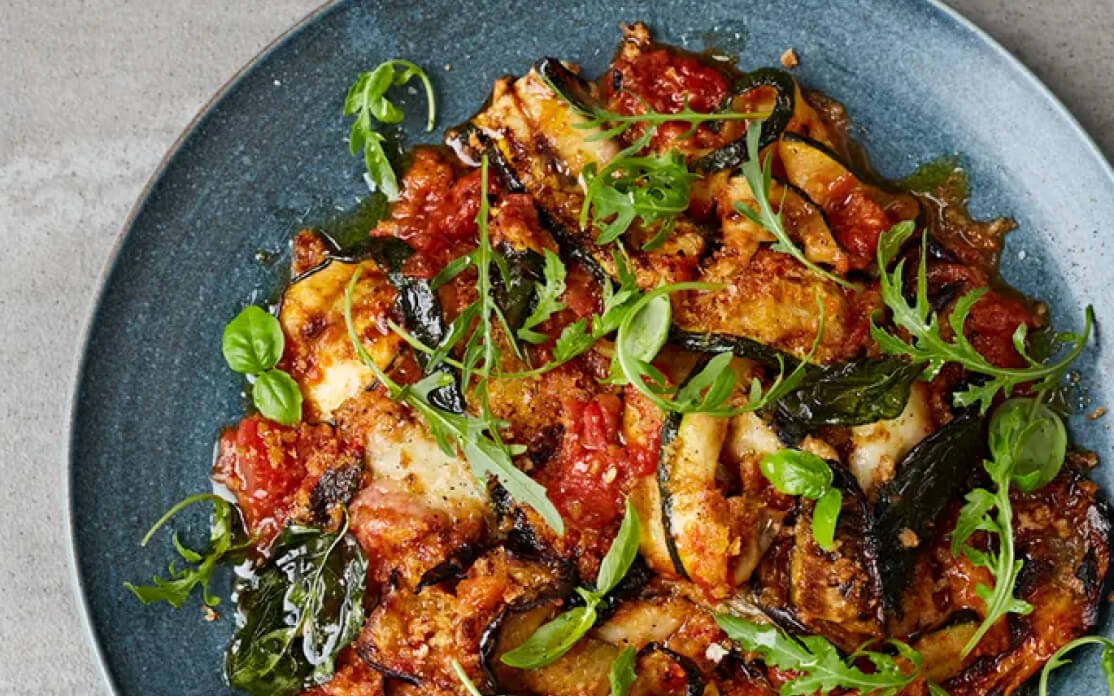 Place the dish in the oven and bake at 190°C/375°F/gas 5 for half an hour until golden, crisp and bubbly. It’s best eaten straight away, but it can also be served cold. You can use the same method substituting courgettes or fennel for the aubergines – both are delicious. But do try making it with aubergines – you’ll love it!