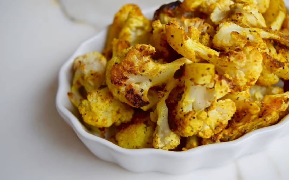 Snijd een plakje van de steel van de bloemkool en verwijder lelijke bladeren; laat de binnenste bladeren eraan zitten. Kook de bloemkool 8-10 minuten in de bouillon. Draai hem om en kook hem nogmaals 8-10 minuten, tot hij beetgaar is. Neem de bloemkool uit het kookvocht en laat hem uitdampen.