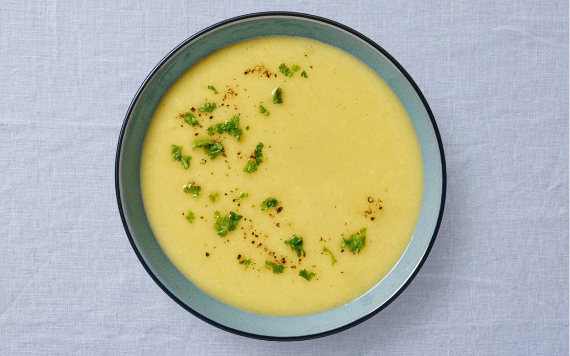 Voeg het water en de bouillonblokjes toe en laat de soep 20 minuten zachtjes koken.