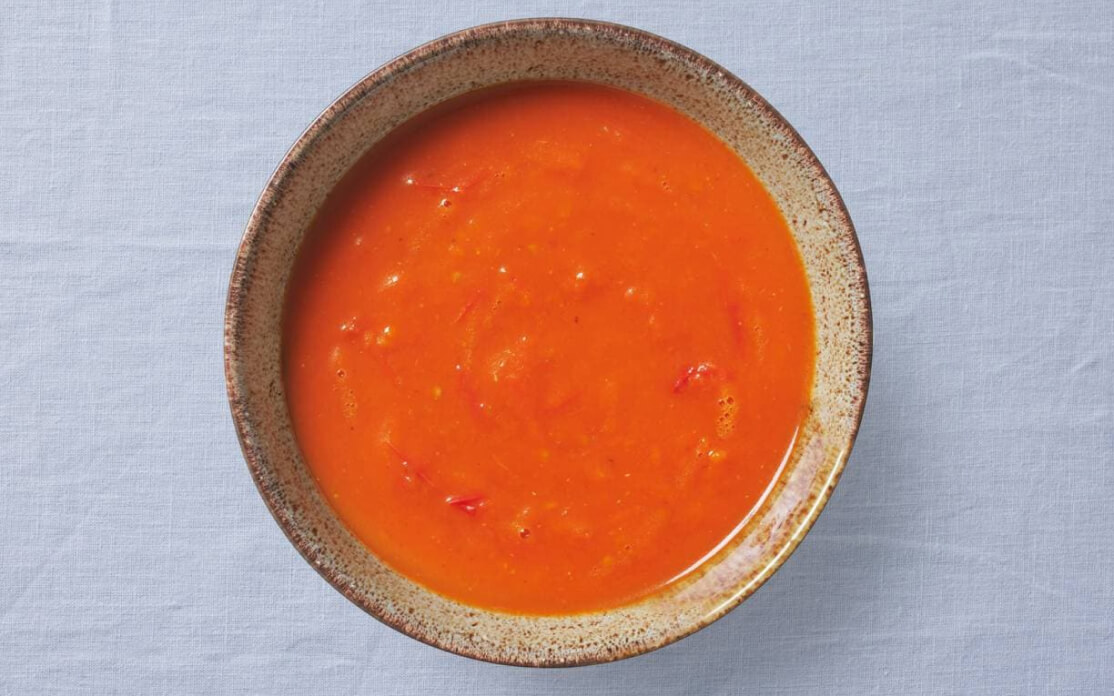 Voeg de tomaten, het water en de groentebouillonblokjes toe, breng aan de kook en laat de soep afgedekt 15 minuten zachtjes koken.
