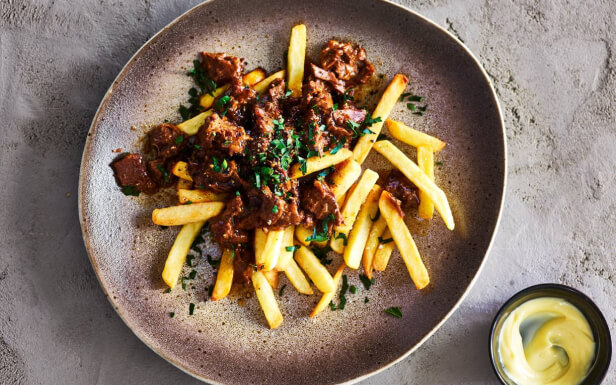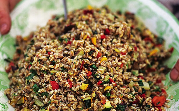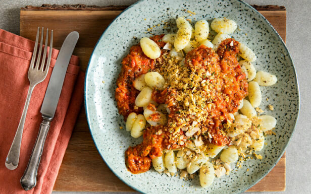 Spruitjes-dadelhummus met geroosterde biet en venkel